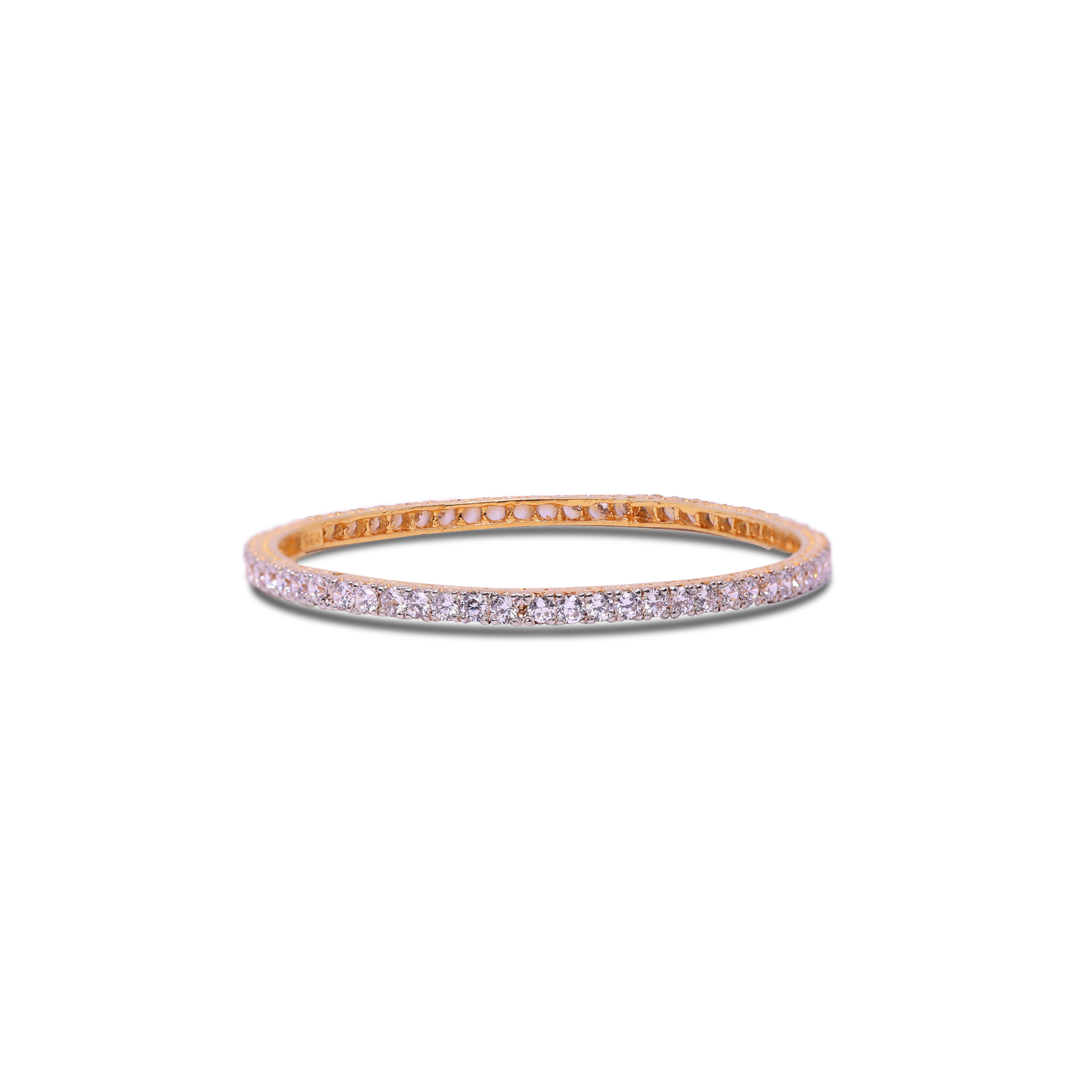 This elegant bangle is a true testament to understated luxury. Featuring a continuous row of sparkling white zircons set in a smooth golden band, it exudes sophistication and grace. The simplicity of the design highlights the brilliance of the zircons, making it a versatile piece that can be worn for both everyday elegance or special occasions. Its delicate and refined aesthetic is perfect for those who love subtle, yet stunning jewelry that adds a touch of glamour to any outfit.