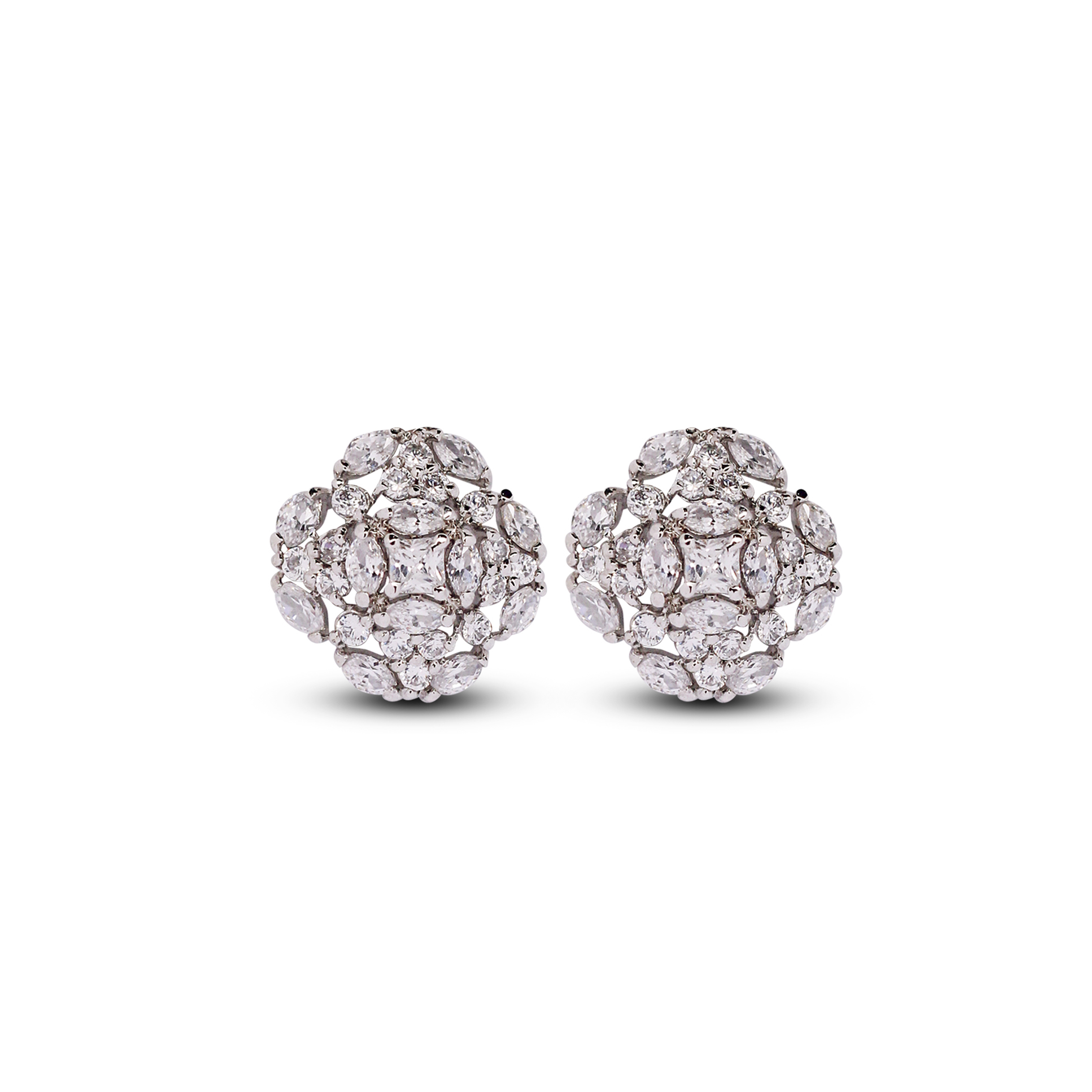 These Clustered Zircon Blossom Earrings exude an air of luxurious charm and timeless beauty. Designed with multiple marquise-shaped zircon stones arranged in a delicate floral cluster, these earrings create a stunning visual effect, reflecting light from every angle. The intricate arrangement gives them a full, blossoming appearance, adding sophistication and sparkle to any occasion. Perfect for evening events or as a statement piece in your jewelry collection, these earrings combine elegance with a touch of glamour, making them a standout accessory.