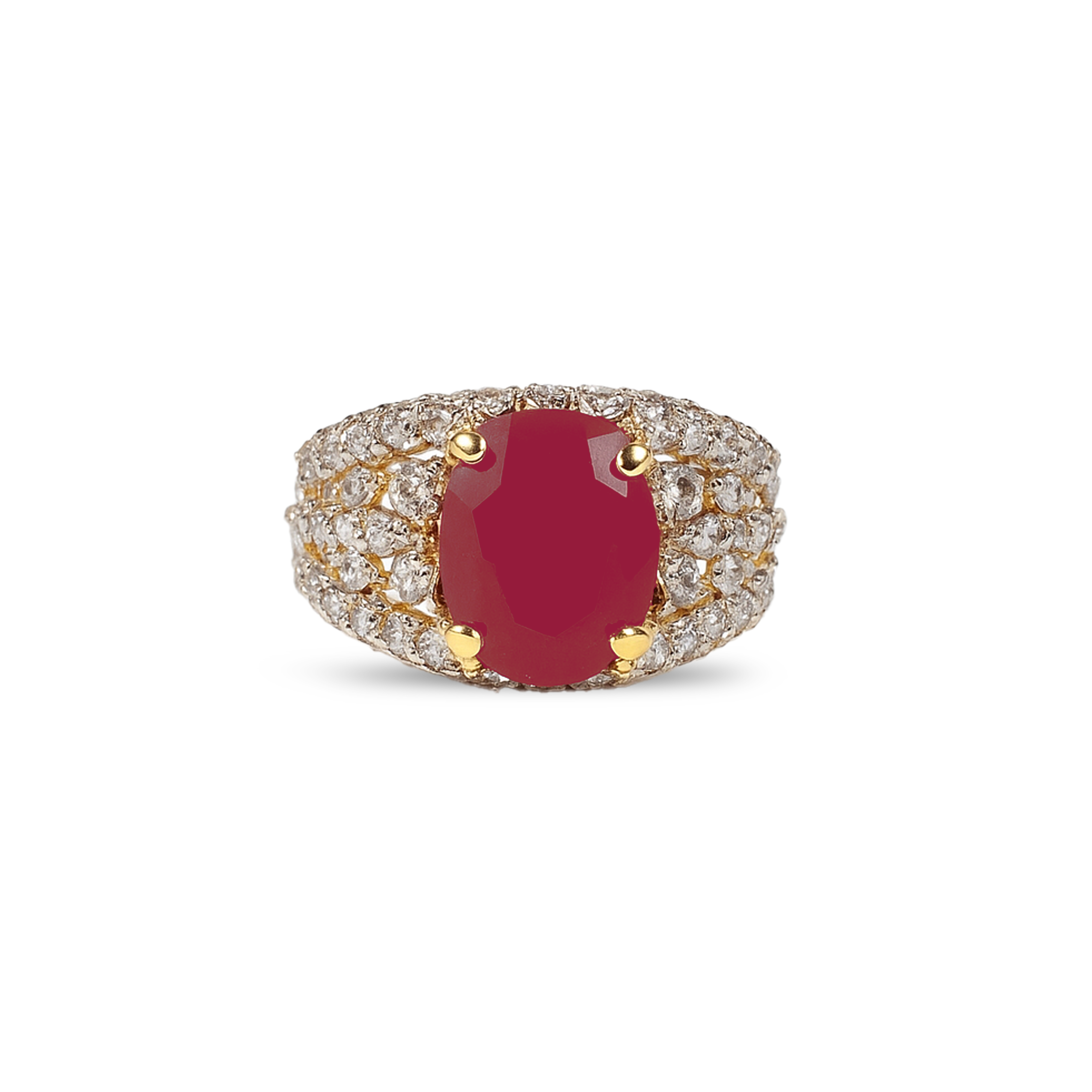 Bring the elegance of a flourishing vine to your jewelry collection with this exquisite silver plated ring. The central ruby is beautifully set, surrounded by sparkling zircon accents that trace delicate vine-like patterns along the band. Carry a piece of nature and grace on your finger with this timeless design.