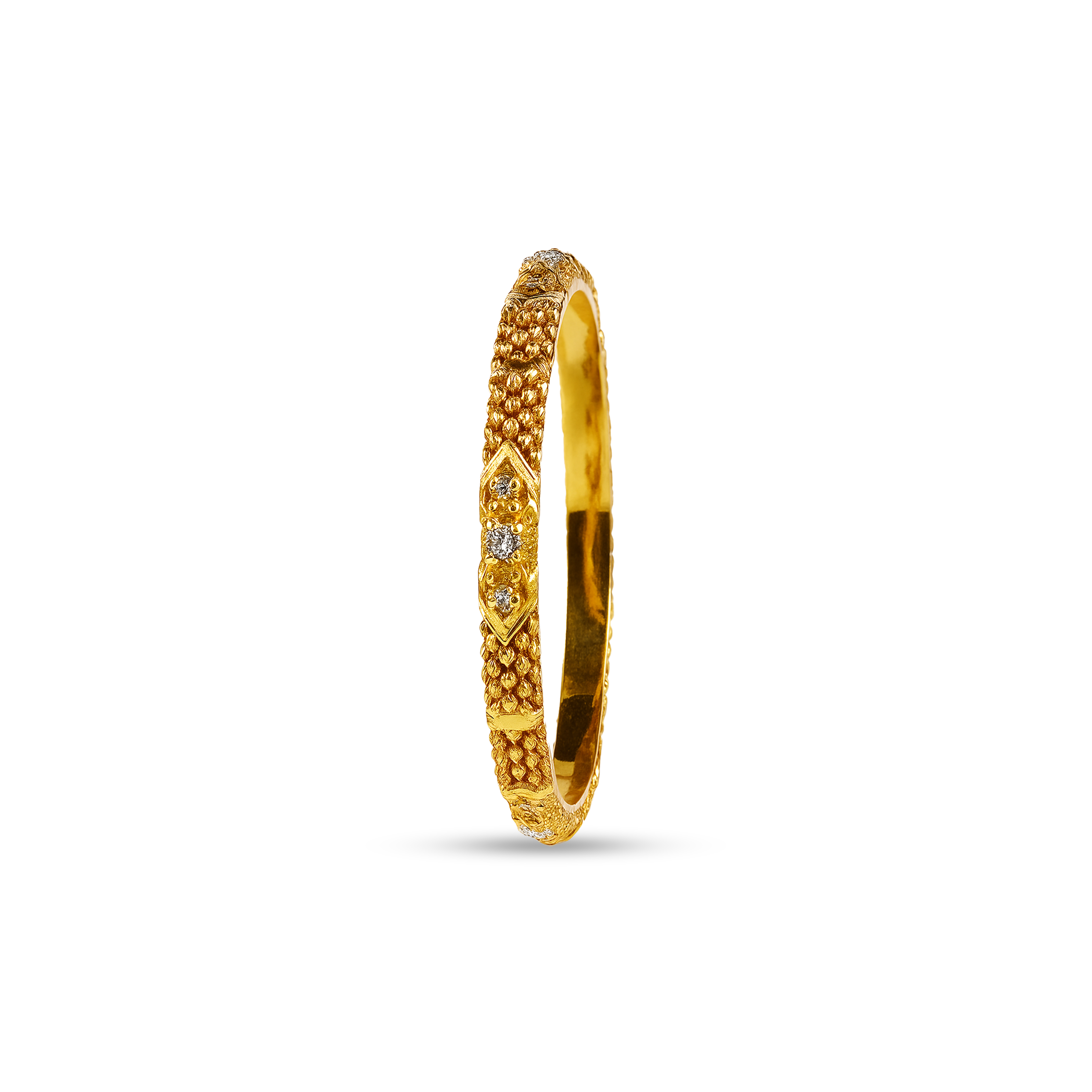 Enhance your ethnic collection with these beautifully crafted gold-plated bangles. Featuring an intricate braided pattern with detailed engraved motifs, these bangles exude timeless charm. Perfect for weddings, festivals, or any traditional celebration, they combine classic design with modern durability.
