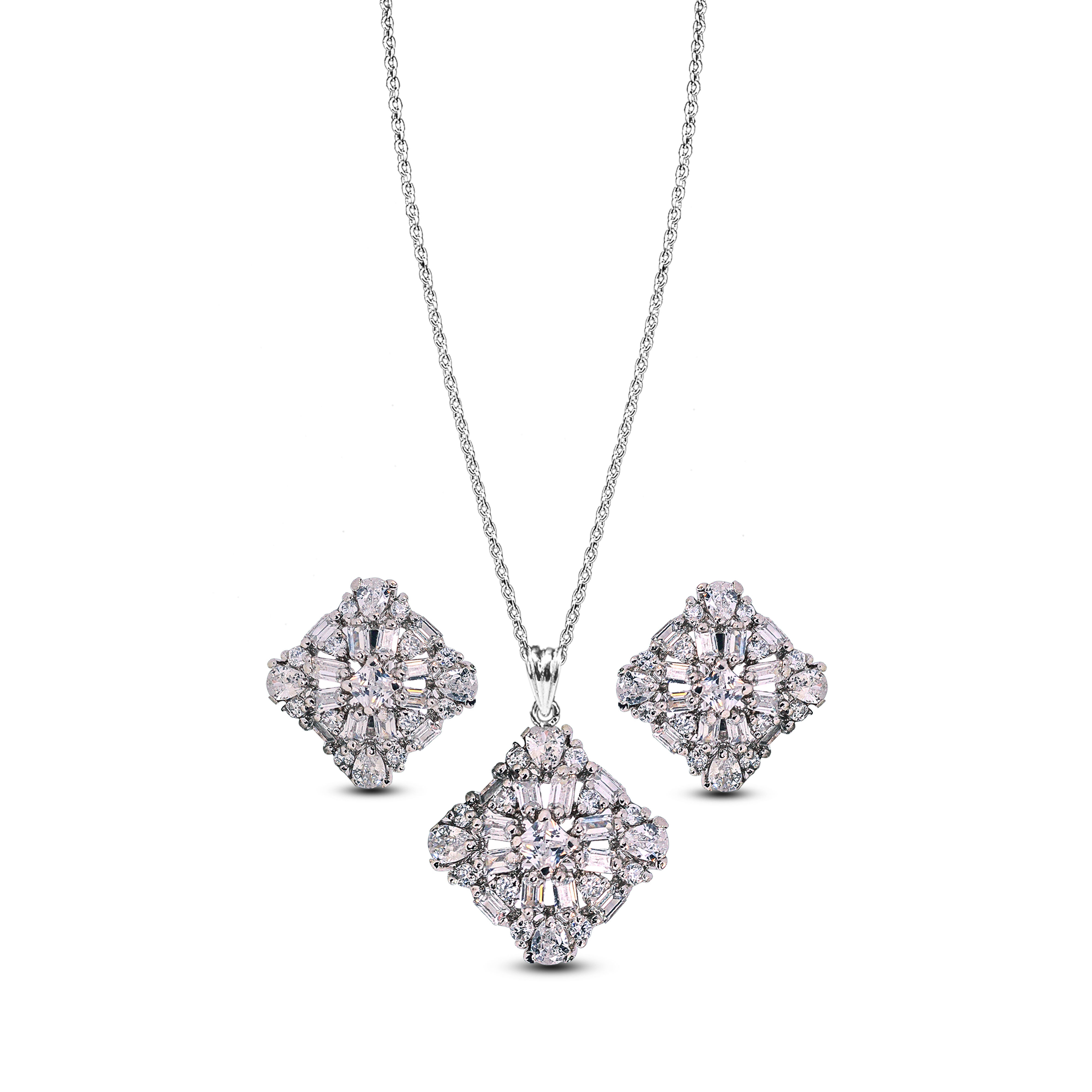 Perfect for weddings, evening events, or special occasions, this set is designed to make you shine with timeless elegance. The rhodium finish gives the jewelry a sleek and polished appearance, ensuring a refined, long-lasting shine.